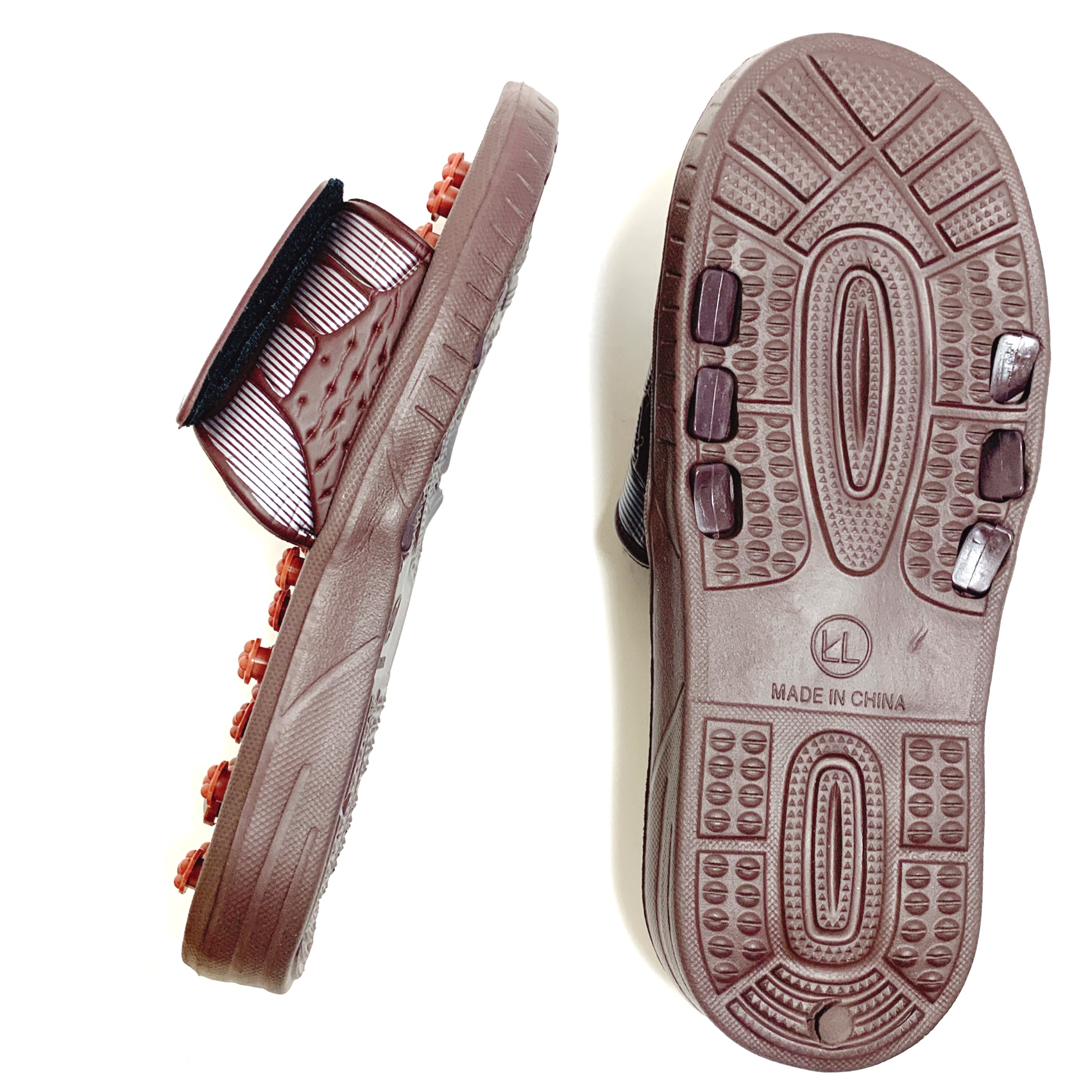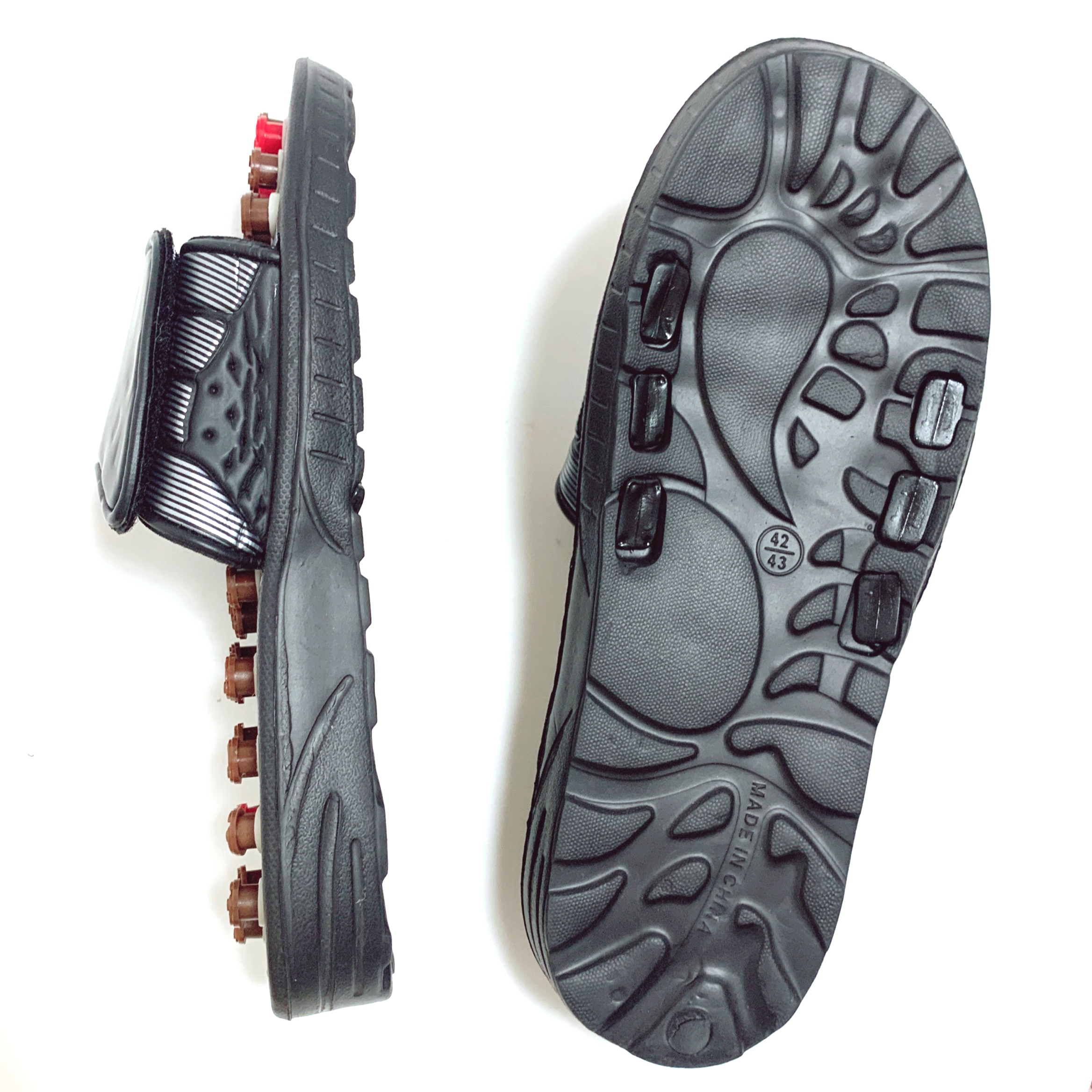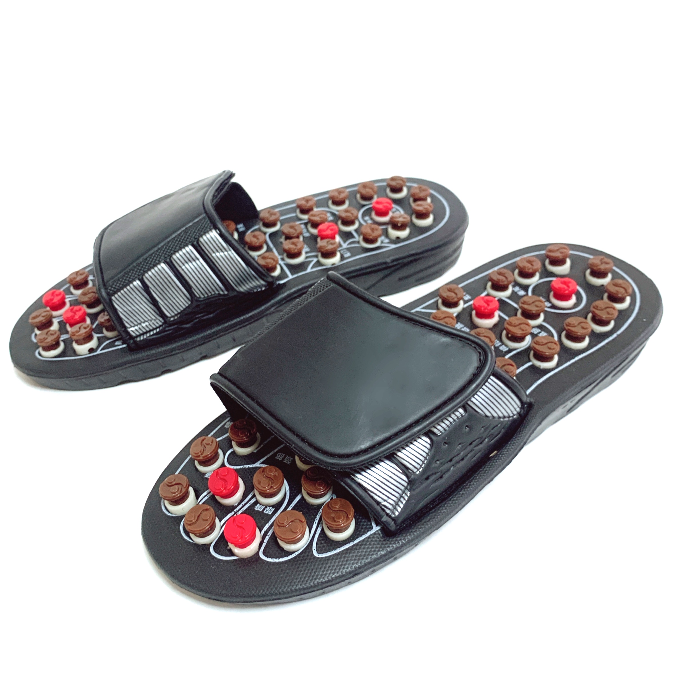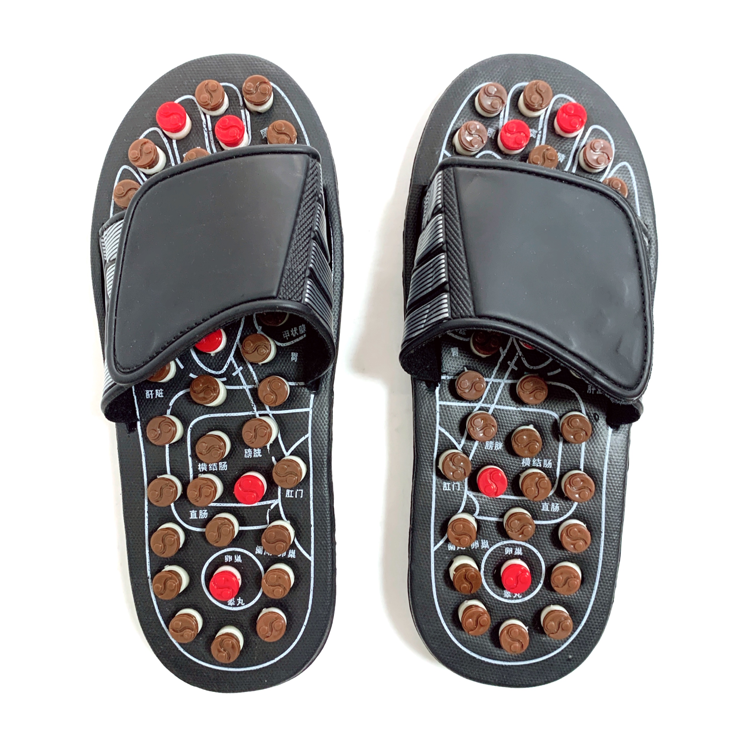 昔のごつい電卓みたいな謎のメカ感がかっこよすぎる、本場中国の足ツボサンダルです!✨ツボのボタンは、押すと回転しながら凹む造りになってて、何かより効きそうな説得力があります🍥